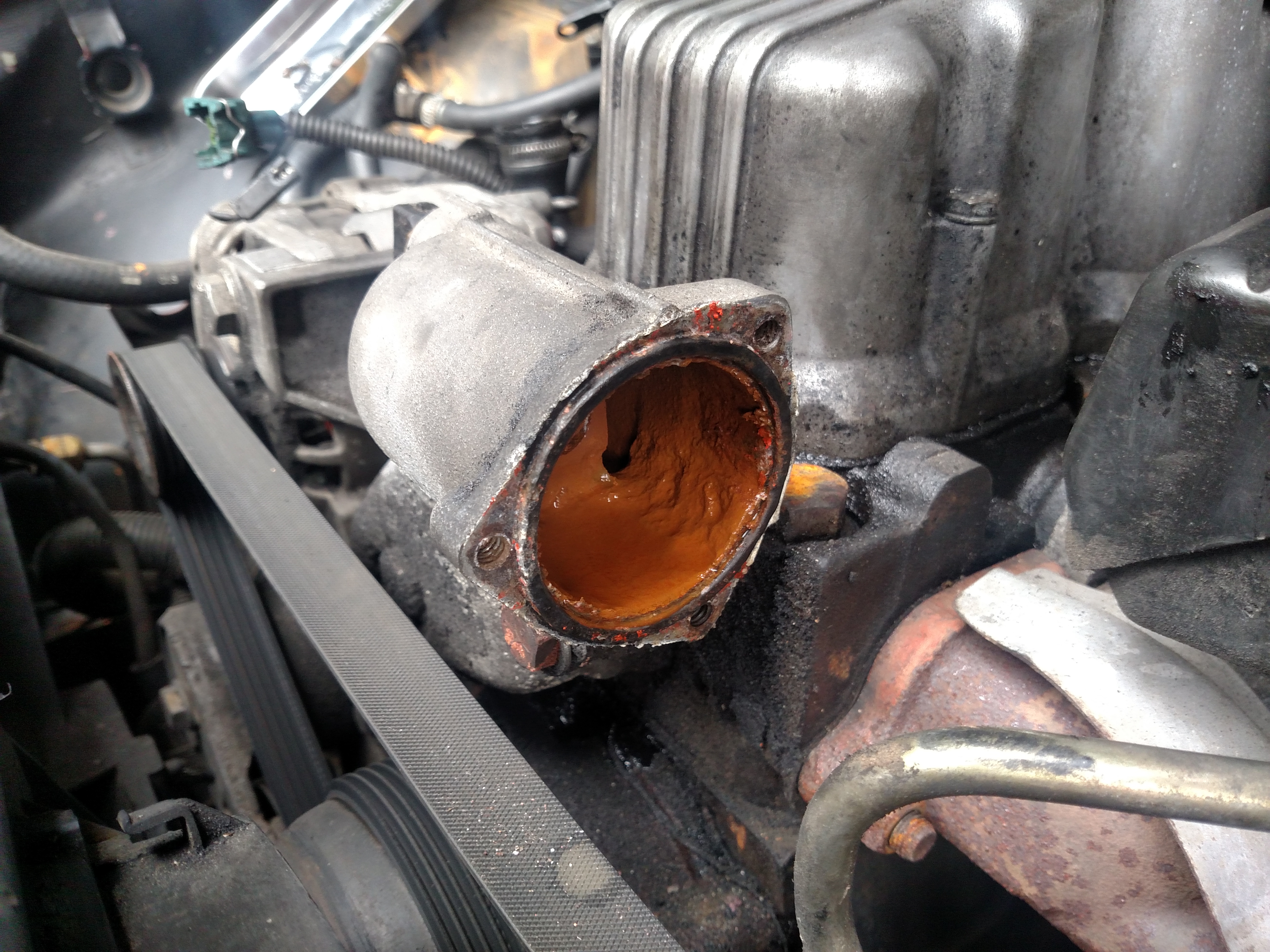 Logo na sequência deste desmonte, fomos para o cabeçote, afinal eu tinha que verificar o real problema do carro. Com a ajuda do Marcelo Lisboa (o mestre daqui se tratando de mecânica), do Luis Ely e um outro amigo, removemos o cabeçote e fiquei bem feliz em ver que o problema (como se já não houvessem muitos) realmente estava na junta do cabeçote, queimada entre o segundo e terceiro cilindro.
