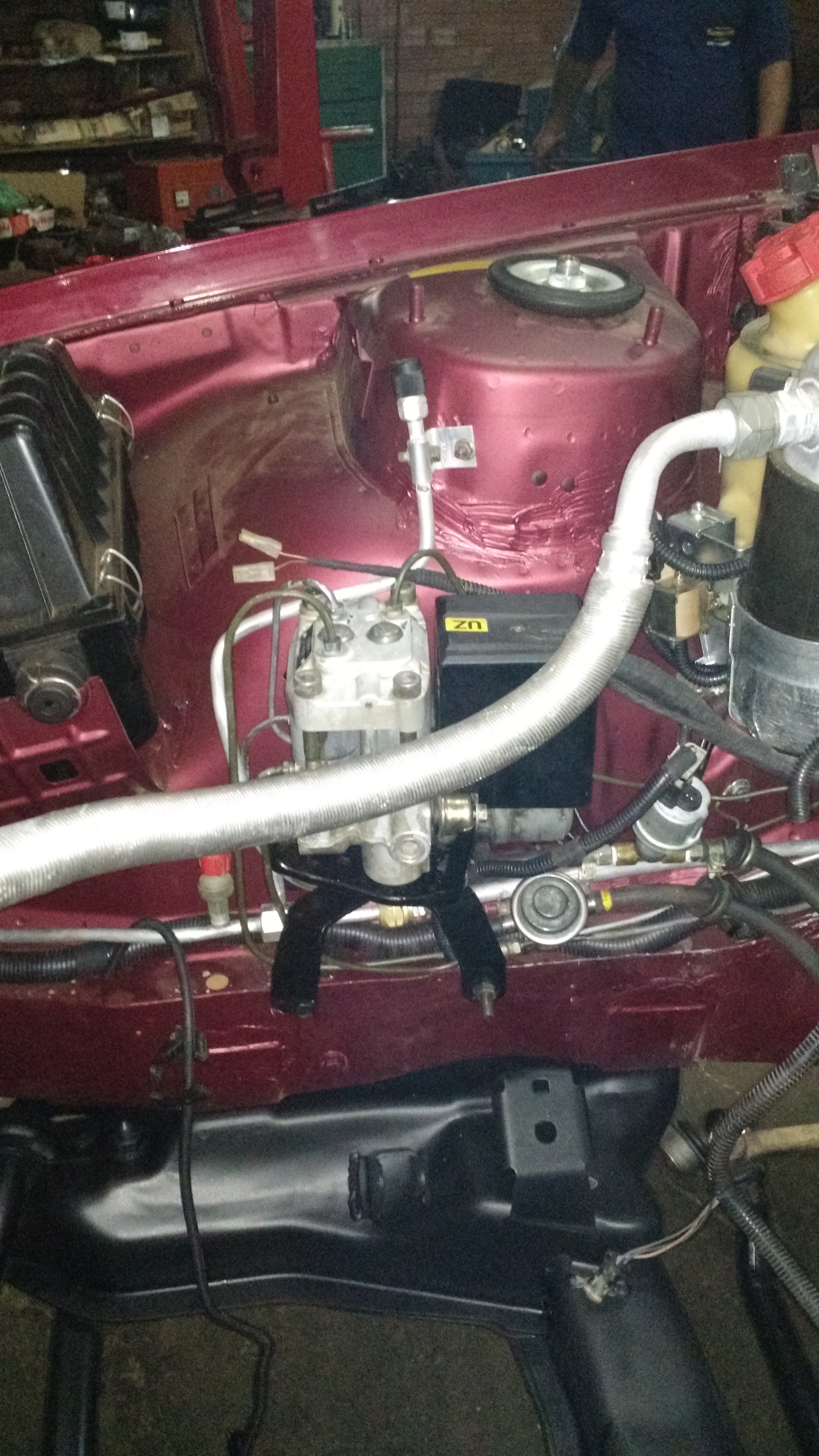 Bahhh, pior que não tenho ideia quando vai pro cofre... Precisamos pintar o agregado e ligar os canos do ABS antes...